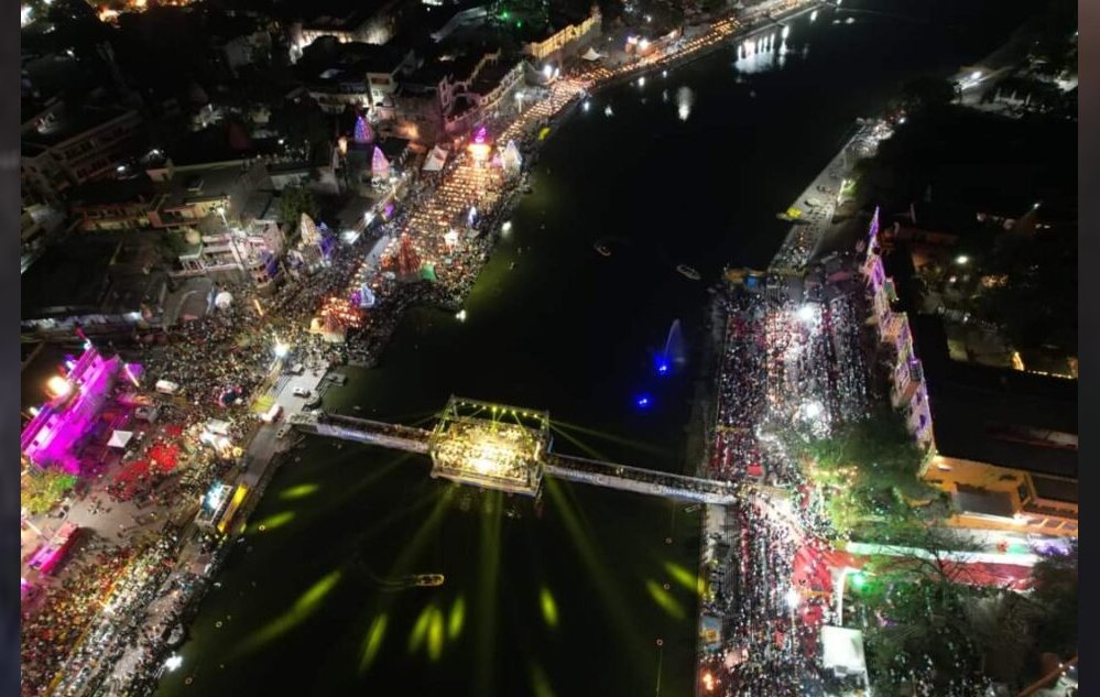 मध्यप्रदेश के उज्जैन में विक्रमोत्सव 2024 अंतर्गत 'शिवज्योति अर्पणम' कार्यक्रम तहत क्षिप्रा के विभिन्न तट पांच लाख 51 हजार दीपों से रोशन हुए।