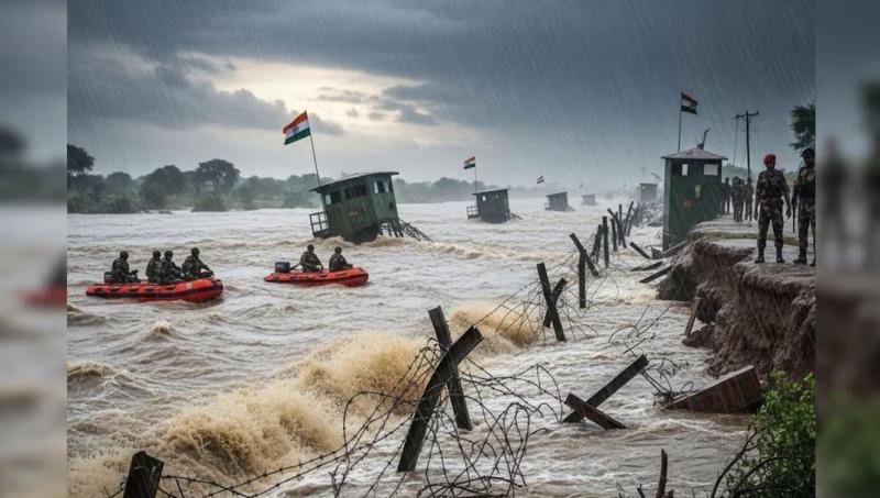 चंडीगढ़: पंजाब के सीमावर्ती इलाकों में रावी नदी के उफान ने जमकर तबाही मचाई है। रावी की तेज धारा ने भारत-पाक सीमा पर लगी लगभग 30 किलोमीटर लोहे की फेंसिंग बहा दी और कई जगह बांध भी तोड़ दिए। इसके चलते सीमा सुरक्षा बल को दर्जनों चौकियां खाली करनी पड़ीं। अधिकारियों के अनुसार, गुरदासपुर, अमृतसर और पठानकोट जिलों में अब तक 50 से अधिक सुरक्षात्मक बांधों में दरारें आ चुकी हैं। बीएसएफ पंजाब फ्रंटियर के डीआईजी ए.के. विद्यार्थी ने स्थिति की पुष्टि करते हुए कहा कि गुरदासपुर में हमारी लगभग 30 से 40 चौकियां पानी में डूब गईं। सभी जवानों और उपकरणों को सुरक्षित निकाल लिया गया है। अमृतसर, गुरदासपुर और फिरोज़पुर सेक्टर में लगभग 30 किलोमीटर बॉर्डर फेंसिंग को नुकसान हुआ है।