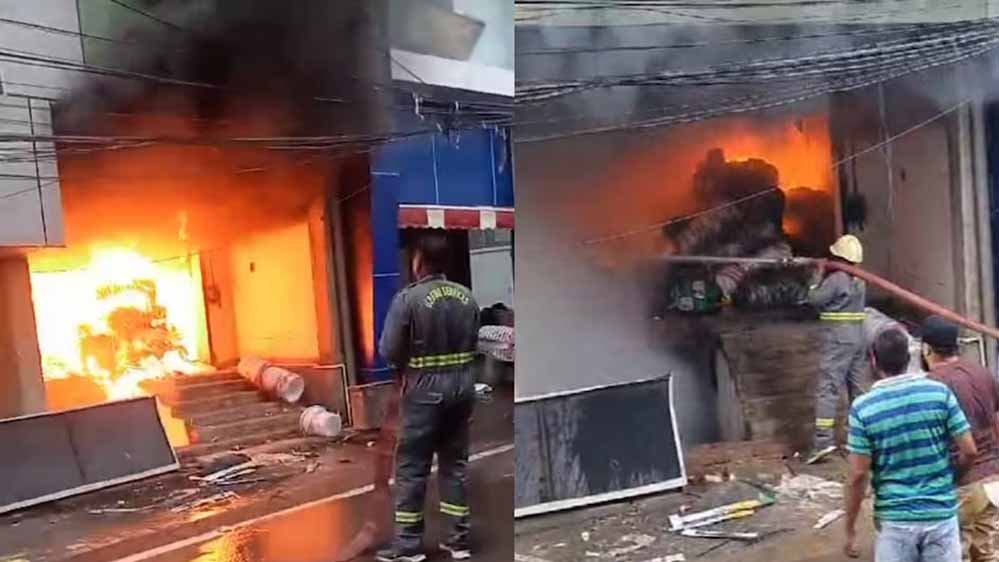यूपी के झांसी में चार मंजिला इमारत के ग्राउंड फ्लोर में रविवार देर शाम अचानक आग लग गई. आग इतनी भीषण थी कि उसकी चपेट में आने से टीवी, फ्रिज, वाशिंग मशीन समेत महंगे गिफ्ट जलकर खाक हो गए. आनन-फानन में सूचना मिलते ही फायर ब्रिगेड की 2 से 3 गाड़ियां मौके पर पहुंची और आग पर काबू पाया.