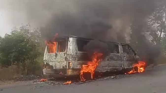 कैला देवी थाना क्षेत्र में संभल-गंवा मार्ग पर शनिवार सुबह करीब आठ बजे गांव लखनपुर के नजदीक मिनी बस में आग लग गई। वाहन में छह छात्र समेत नौ लोग सवार थे। छात्रों को अलीगढ़ मुस्लिम विश्वविद्यालय में प्रवेश परीक्षा देने जाना था। अचानक से आग लगी तो सभी ने कूद कर जान बचाई।