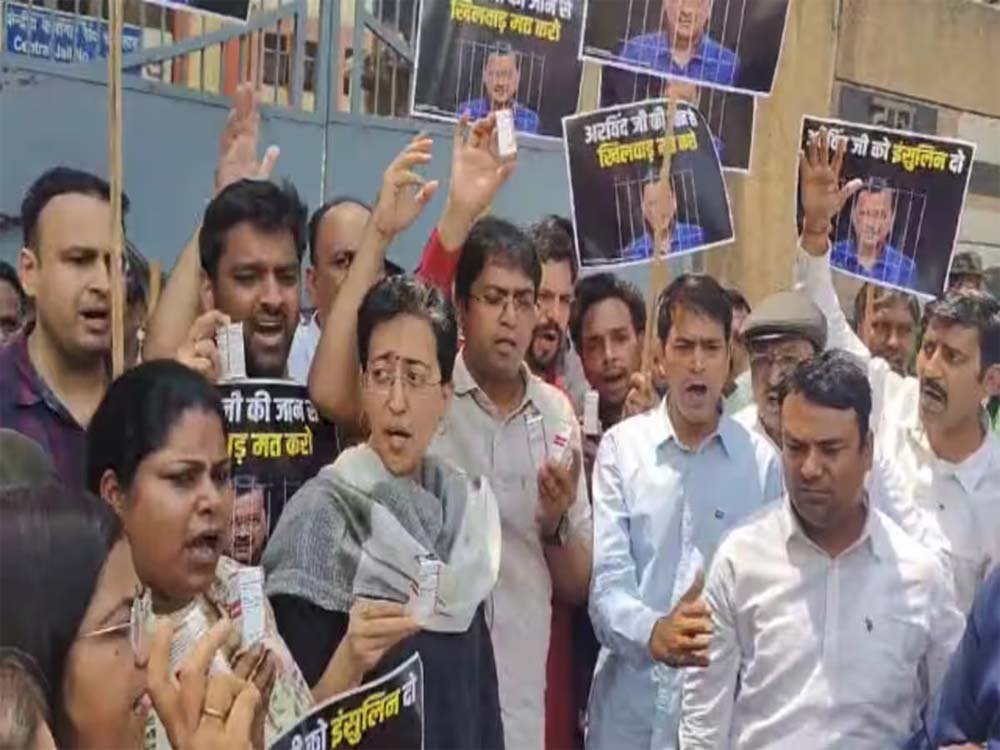 'आप' नेता और कार्यकर्ता तिहाड़ जेल प्रशासन के खिलाफ प्रदर्शन कर रहे हैं। सभी के हाथों में इंसुलिन है। वह 'अरविंद जी को इंसुलिन दो' के नारे लगा रहे हैं। दरअसल, 'आप' का आरोप है कि जानबूझ कर उनके सबसे बड़े नेता को इंसुलिन नहीं दिया जा रहा है। वहीं इस मामले पर तिहाड़ का कहना है कि सीएम केजरीवाल ने गिरफ्तारी से महीनों पहले इंसुलिन लेना बंद कर दिया था।