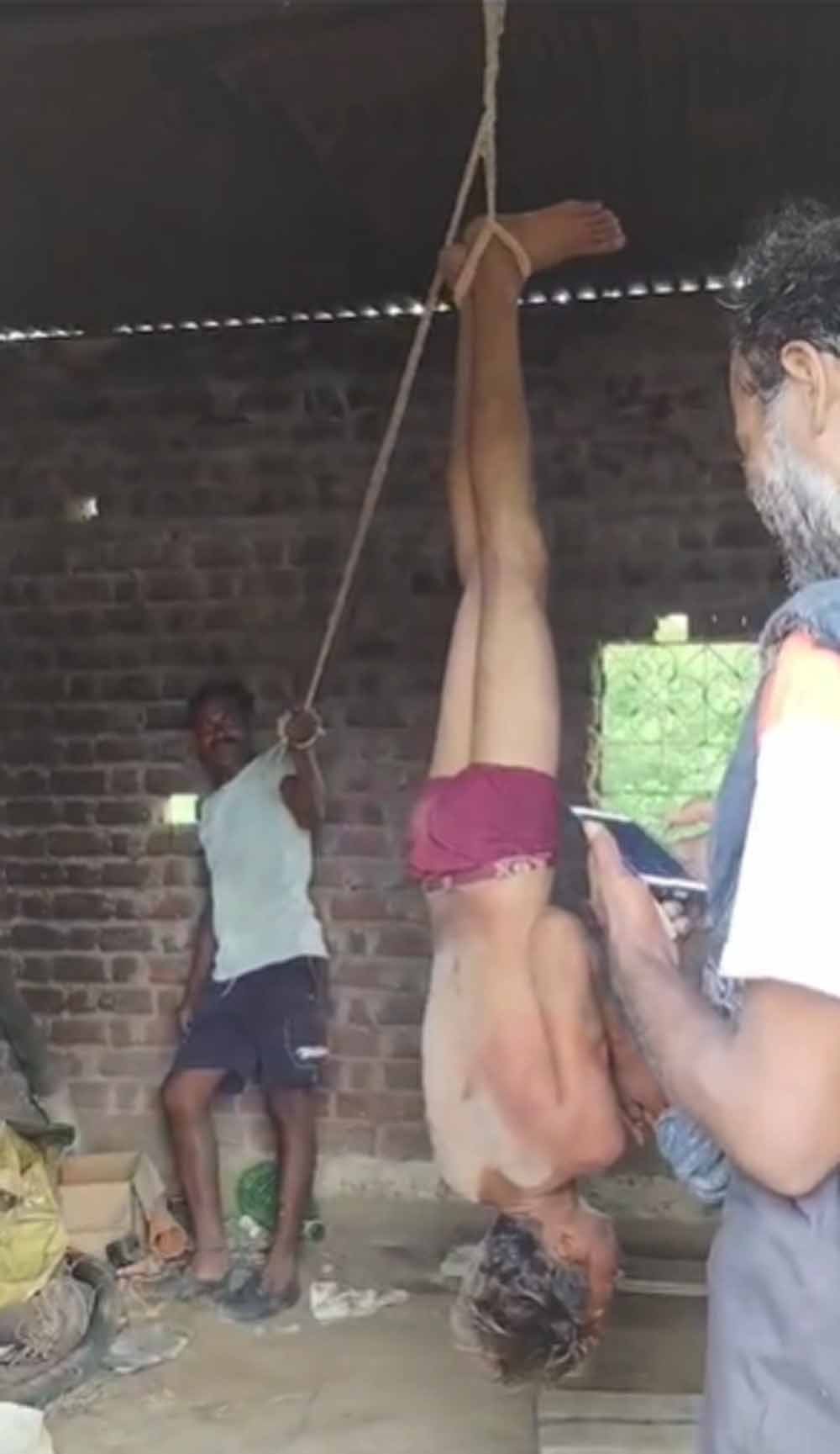 घर के अंदर उल्टा लटकाकर पीटा