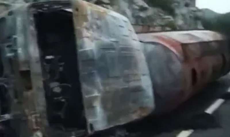 उदयपुर: जिले में सोमवार सुबह एक दिल दहला देने वाला हादसा हुआ। गोगुंदा-पिंडवाड़ा नेशनल हाईवे-27 पर घसियार के पास एक एसिड से भरा टैंकर अनियंत्रित होकर पलट गया। हादसा इतना भीषण था कि टैंकर करीब 300 मीटर तक सड़क पर घिसटता गया और फिर उसमें भीषण आग लग गई। आग की लपटों ने पूरे वाहन को चपेट में ले लिया, जिससे टैंकर चालक की जिंदा जलने से मौके पर ही दर्दनाक मौत हो गई।
