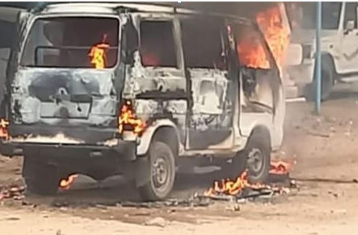 वैन में भरे थे नए कपड़े, पुलिस ने जलती हुई देखी