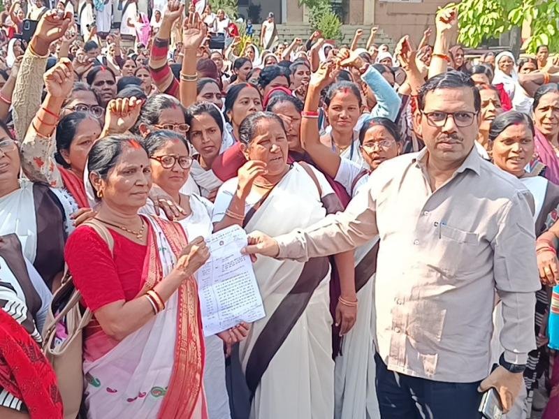काम बंद कर कंपनी के गेट लगाकर प्रदर्शन किया