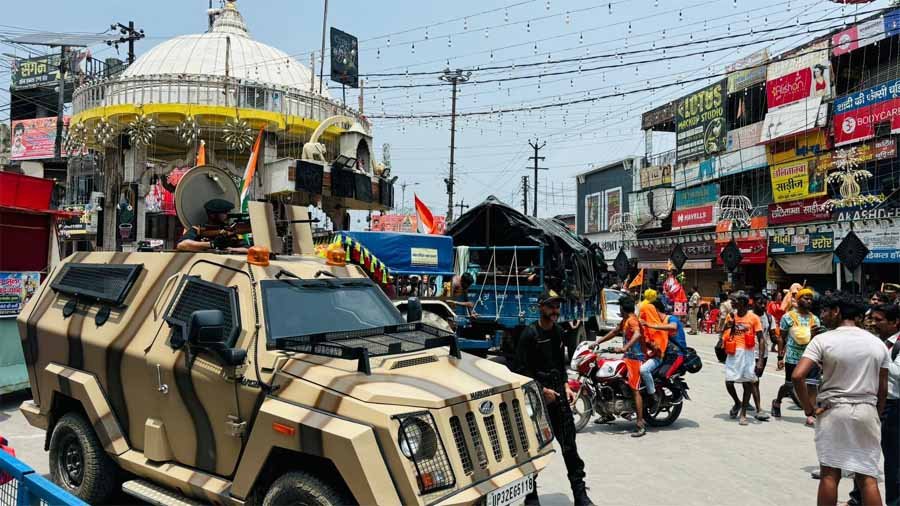 यूपी में कांवड़ यात्रा को सकुशल संपन्न कराने अए उद्देश्य शासन के निर्देश पर मुजफ्फरनगर शिव चौक पर एटीएस की छह टीमों की तैनाती की गई है। ये सभी छह टीमें आगामी दो अगस्त शिवरात्रि तक तैनात रहेगी। हर एक टीम में छह कमांडो शामिल है। टीम बुलेट प्रूफ गाड़ी व आधुनिक हथियार से लैस है। एसएसपी अभिषेक सिंह ने बताया कि इनकी ड्यूटी शहर के शिव चौक से आधा किलोमीटर तक की परिधि में लगाई गई है। जरूरत पड़ने पर सभी जगह टीम को भेजने की व्यवस्था रहेगी। खास बात यह है कि इनके पास एलएमजी व कई किलोमीटर की रेंज में वार करने वाले हथियार भी हैं। एसएसपी अभिषेक सिंह ने शिव चौक पर एटीएस की टीम को ब्रीफ करते हुए शिव चौक की व्यवस्था और कांवडियों के आवागमन के बारे में भी विस्तार से बताया।