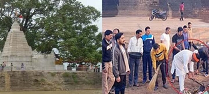 गरियाबंद. गरियाबंद में स्वच्छ तीर्थ के तहत सोंढूर, पैरी एवं महानदी के त्रिवेणी संगम में स्थित प्राचीन मंदिर पंचमुखी कुलेश्वरनाथ...