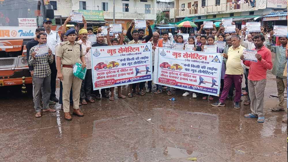 पुलिस मुख्यालय पीटीआरआई भोपाल द्वारा प्राप्त निर्देश एवं पुलिस अधीक्षक अनूपपुर श्री जितेन्द्र सिंह पवांर ,अतिरिक्त पुलिस अधीक्षक अनूपपुर श्री इसरार मन्सूरी एवं एसडीओपी अनूपपुर श्री सुमित केरकेट्टार के आदेश अनुसार यातायात प्रभारी अनूपपुर ज्योति दुबे एवं स्टाफ डीव्हीएम पब्लिक स्कूल अनूपपुर, एवं बस स्टैंड में गुड सेमेरिटन योजना के विषय में बच्चों एवं आमजन के बीच कार्यक्रम आयोजित कर योजना के विषय में बताया गया कि सड़क परिवहन एवं राजमार्ग मंत्रालय द्वारा 3 अक्टूबर 2021 से संचालित यह योजना जिसके तहत ऐसे नेक व्यक्ति को पुरस्कृत किया जाता है, जिसने सड़क दुर्घटना में घायल किसी व्यक्ति को ' गोल्डन आवर' में अस्पताल या स्वास्थ्य केंद्र पहुंचाकर उसका जीवन बचाया हो ,पुरस्कार स्वरूप नेक व्यक्ति (गुड सेमेरिटन) को ₹5000 की राशि एवं प्रशस्ति पत्र प्रदान कर सम्मानित किया जाता है।