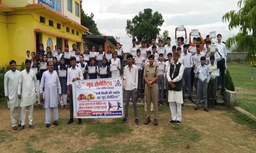 पुलिस मुख्यालय पीटीआरआई भोपाल द्वारा प्राप्त निर्देश एवं पुलिस अधीक्षक अनूपपुर जितेन्द्र सिंह पवांर ,अतिरिक्त पुलिस अधीक्षक अनूपपुर इसरार मन्सूरी एवं एसडीओपी अनूपपुर सुमित केरकेट्टार के आदेश अनुसार यातायात प्रभारी अनूपपुर ज्योति दुबे एवं स्टाफ सरस्वती स्कूल अनूपपुर में गुड सेमेरिटन योजना के विषय में बच्चों एवं आमजन के बीच कार्यक्रम आयोजित कर योजना के विषय में बताया गया कि , सड़क परिवहन एवं राजमार्ग मंत्रालय द्वारा 3 अक्टूबर 2021 से संचालित यह योजना जिसके तहत ऐसे नेक व्यक्ति को पुरस्कृत किया जाता है, जिसने सड़क दुर्घटना में घायल किसी व्यक्ति को ' गोल्डन आवर' में अस्पताल या स्वास्थ्य केंद्र पहुंचाकर उसका जीवन बचाया हो ,पुरस्कार स्वरूप नेक व्यक्ति (गुड सेमेरिटन) को ₹5000 की राशि एवं प्रशस्ति पत्र प्रदान कर सम्मानित किया जाता है।