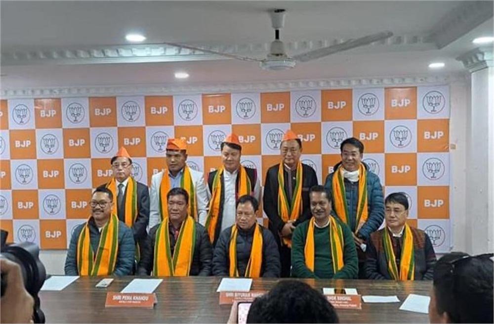 अरुणाचल प्रदेश की राजधानी ईटानगर में आयोजित एक कार्यक्रम में मुख्यमंत्री पेमा खांडू की उपस्थिति में कांग्रेस विधायक निनॉन्ग एरिंग और वांगलिन लोवंडोंग और एनपीपी विधायक मुत्चू मिथि और गोकर बसर भाजपा में शामिल हो गए।इस दौरान असम के मंत्री और अरुणाचल के लिए भाजपा के चुनाव प्रभारी अशोक सिंघल भी मौजूद थे।