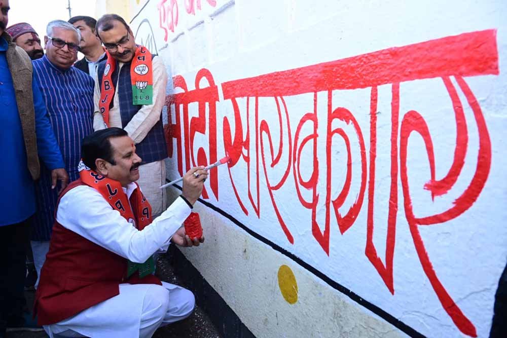 प्रधानमंत्री नरेंद्र मोदी जी के नेतृत्व में 2024 के लोकसभा चुनाव को लेकर भारतीय जनता पार्टी 15 जनवरी से देश भर में दीवार लेखन अभियान चला रही है। इस अभियान के तहत लोकसभा चुनाव के प्रदेश प्रभारी डॉ. महेंद्र सिंह ने रविवार को रोशनपुरा चौराहे पर एवं सह प्रभारी सतीश उपाध्याय ने वार्ड क्रमांक 26 के बूथ क्रमांक 7 ग्राम सेवनिया गौड़, नागेश्वर मंदिर सूरज नगर तिराहे पर दीवार लेखन किया। लोकसभा चुनाव के प्रदेश प्रभारी डॉ. महेंद्र सिंह एवं सह प्रभारी सतीश उपाध्याय ने दीवार पर अपने हाथ से कमल का फूल बनाया और ‘‘एक बार फिर से मोदी सरकार’’ स्लोगन लिखा।