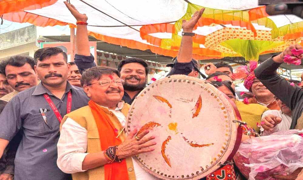 विजयवर्गीय जनजाति नर्तक टोली के बिच पहुंचकर मादल बजाय