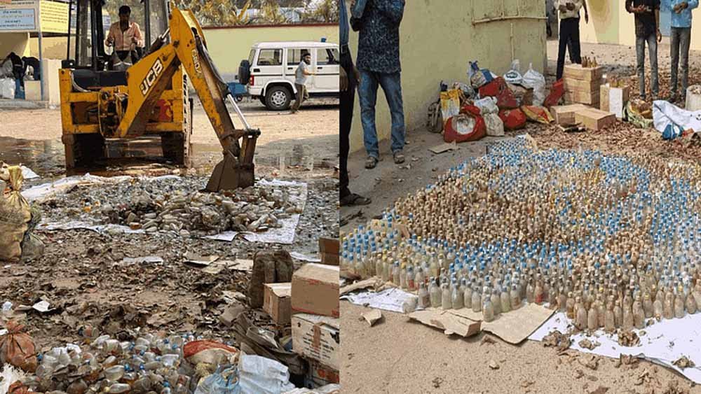 कोर्ट के आदेश बाद में थाना दाढ़ी के 52 प्रकरण में 307 लीटर 360 एमएल, पुलिस चौकी मारो के 10 प्रकरण में 36 लीटर 180 एमएल, थाना नवागढ के 28 प्रकरण में 91 लीटर 620 एमएल, चौकी कंडरका में 22 प्रकरण में 76 लीटर 860 एमएल, थाना नांदघाट के 34 प्रकरण में 99 लीटर 900 एमएल, चौकी खंडसरा के 21 प्रकरण में 315 लीटर 660 एमएल, थाना बेरला के 49 प्रकरण में 855 लीटर 820 एमएल, कुल 216 प्रकरण में 1 हजार 783 लीटर 400 एमएल शराब को बुलडोजर चलाकर नष्ट किया गया। इन शराब को पुलिस ने आरोपियों के कब्जे से बरामद किया था। इसके बाद कोर्ट में पेश किया गया था। कोर्ट में सुनवाई के बाद अवैध शराब को नष्ट किया है।