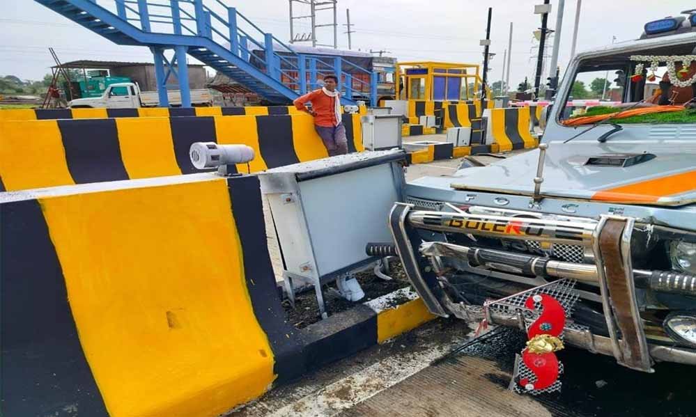 रविवार सुबह पांच बजे वाहन क्रमांक एमएच 38-7197 का चालक तेज गति से व लापरवाही पूर्वक वाहन चलाकर लाया और टोल प्लाजा को टक्कर मार दी।