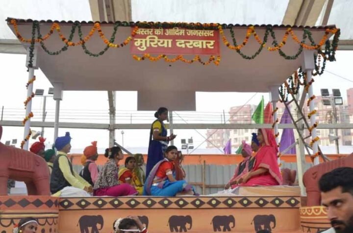 नई दिल्ली नई दिल्ली के कर्तव्य-पथ पर गणतंत्र-दिवस परेड में छत्तीसगढ़ की झांकी बस्तर की आदिम जनसंसद मुरिया दरबार...