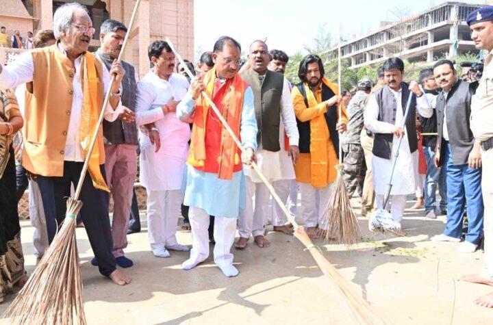 छत्तीसगढ़: CM साय ने राम मंदिर में लगाई झाड़ू, की पूजा-अर्चना, मंत्री बृजमोहन समेत कई दिग्गज रहे मौजूद