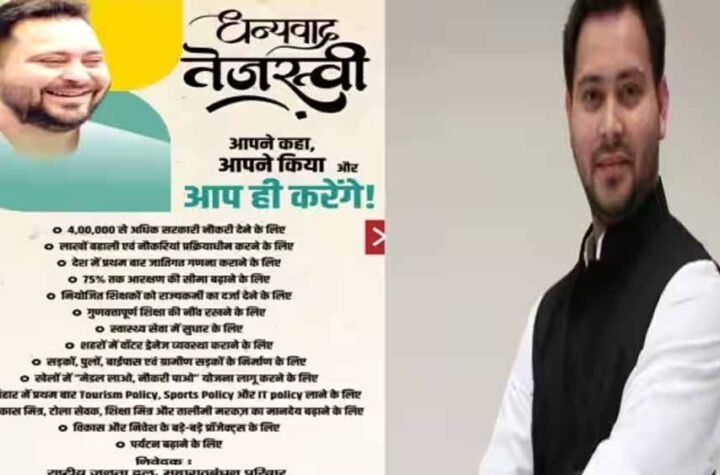 4 लाख जॉब, 75 फीसदी आरक्षण: जाती हुई सरकार के कामों का क्रेडिट ले रहे तेजस्वी, दिया फुल पेज विज्ञापन