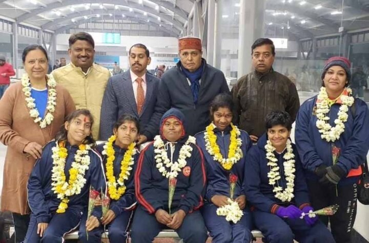 भोपाल स्पेशल ओलंपिक्स भारत मध्यप्रदेश महिला फ्लोरबॉल दल खिलाड़ी कु पिंकी, कु पावली, की साक्षी जैसवाल, कु माधवी सिंह, कु...