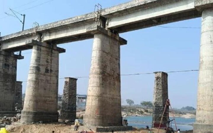 झारखंड के लोहरदगा रेलवे स्टेशन के पास कोयल नदी पर बने रेल पुल के एक पिलर के क्षतिग्रस्त होने से...
