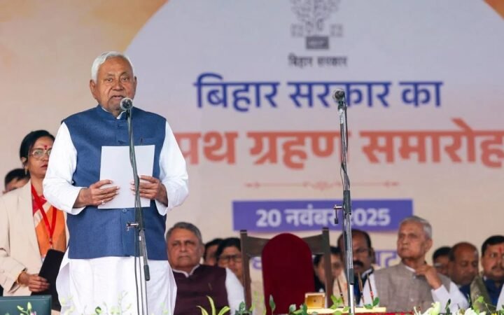 बिहार | बिहार विधानसभा में बहुमत हासिल करने के बाद गुरुवार को पटना के गांधी मैदान में नीतीश कुमार 10वीं...