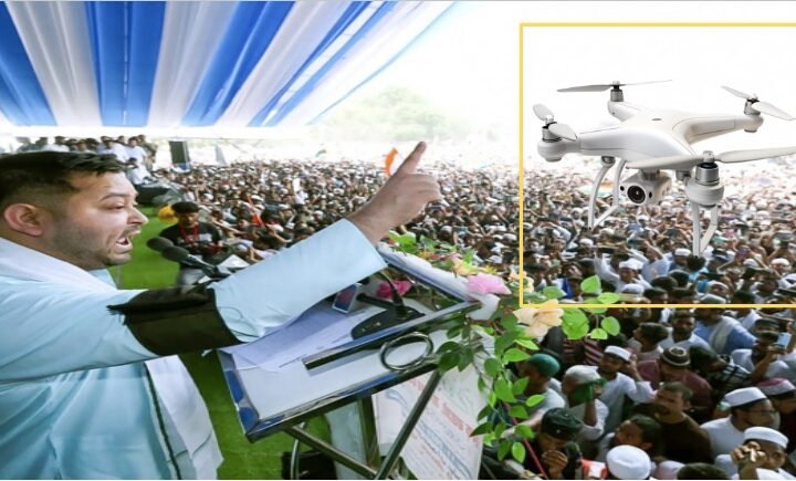 पटना के गांधी मैदान में उस वक्त हड़कंप मच गया, जब एक ड्रोन तेजस्वी यादव के पोडियम से टकरा गया....
