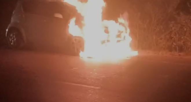 लावड़। दिल्ली-दून हाईवे पर वलीदपुर गांव के पास गुरुवार देर रात चलती कार में भीषण आग लग गई। बमुश्किल कार...