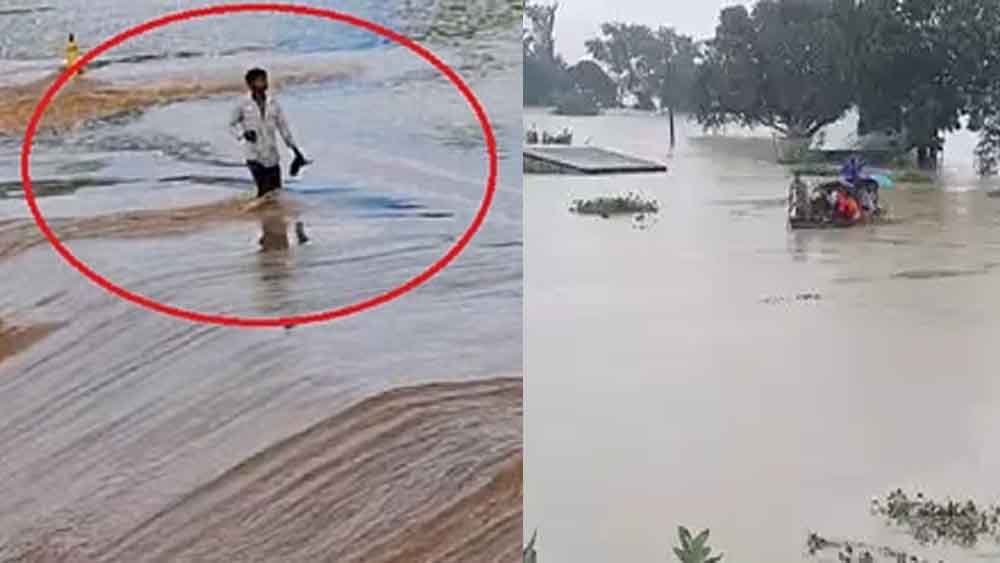 जैसे ही युवक एनीकट से आना शुरू हुआ दोनों और देखते-देखते सैकड़ो लोगों की भीड़ उमड़ गई परंतु युवक सबसे बेखबर अपने मस्ती में मोबाइल देखते एनीकट पार कर गया।