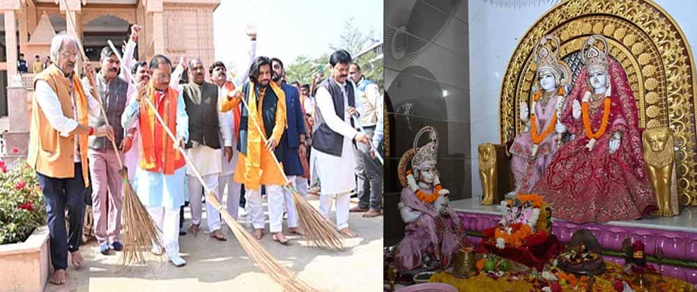 छत्तीसगढ़ के मुख्यमंत्री विष्णुदेव साय आज मकर संक्रांति के अवसर पर राजधानी रायपुर के वीआईपी रोड स्थित राम मंदिर पहुंचे। इस दौरान उन्होंने भगवान श्रीराम और माता जानकी की विधि-विधान से पूजा अर्चना की। इसके साथ ही वहां साफ सफाई की। इस दौरान मंत्री बृजमोहन अग्रवाल, सांसद सुनील सोनी, आरंग विधायक गुरु खुशवंत साहेब समेत कई कार्यकर्त्ता औए नेता शामिल हुए।
