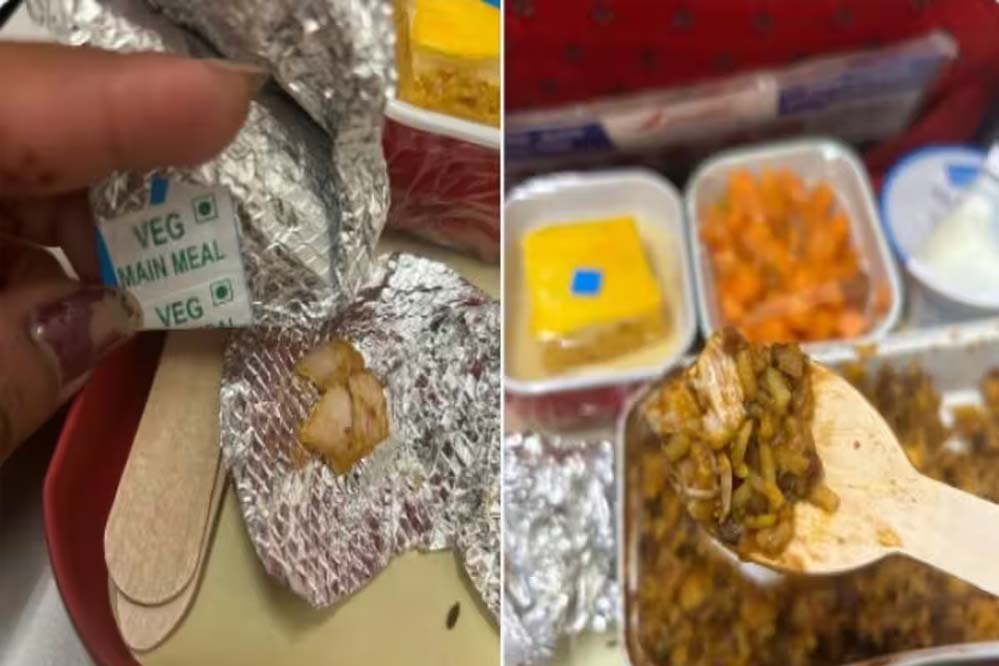 रिपोर्ट के मुताबिक, मामला एयर इंडिया की कालीकट से मुंबई जाने वाली फ्लाइट का है। एक यात्री वीरा जैन ने एक्स पर जब अपनी परेशान करने वाली आपबीती सुनाई तो मजबूरन एयर इंडिया को भी जवाब देना पड़ा। वीरा जैन को ऐसा भोजन परोसा गया जिस पर शाकाहारी का लेबल लगा था, लेकिन उन्हें यह देखकर हैरानी हुई कि उसमें चिकन के टुकड़े थे। पहले से ही एक घंटे की देरी से चल रही फ्लाइट संख्या AI582 निर्धारित शाम 6:40 बजे के बजाय शाम 7:40 बजे रवाना हुई थी।