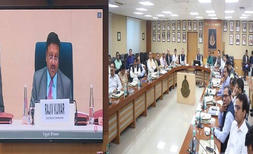 भारत निर्वाचन आयोग के मुख्य निर्वाचन आयुक्त राजीव कुमार ने लोकसभा निर्वाचन 2024 के संबंध में सामान्य प्रेक्षक, पुलिस प्रेक्षक और व्यय प्रेक्षकों के साथ वीडियो कांफ्रेंसिंग के माध्यम से बैठक की और आवश्यक निर्देश दिए। बैठक में मुख्य निर्वाचन पदाधिकारी अनुपम राजन भी उपस्थित रहे।