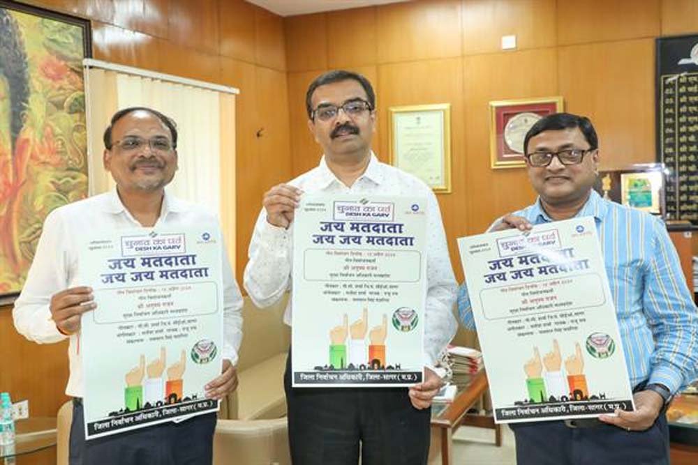 मुख्य निर्वाचन पदाधिकारी श्री अनुपम राजन ने सागर के जिला पंचायत सीईओ एवं मतदाता जागरूकता अभियान (स्वीप) के नोडल अधिकारी श्री पी.सी. शर्मा द्वारा स्वरचित मतदाता जागरूकता गीत के पोस्टर और सीडी का विमोचन किया।