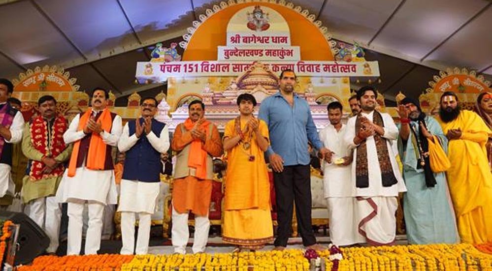 सांसद विष्णुदत्त शर्मा ने सामूहिक विवाह कार्यक्रम को ऐतिहासिक बताया। उन्होंने कहा कि आइकॉनिक सिटी खजुराहो के साथ बागेश्वर धाम की भी देश में अलग पहचान स्थापित हुई है। हरियाणा से आए कुश्ती पहलवान दलीप सिंह राणा उर्फ खली ने एक स्थल पर गरीब कन्याओं के विवाह आयोजन को अनूठा और समाज के लिए अनुकरणीय बताया।