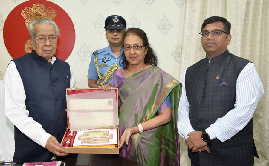 राज्यपाल श्री विश्वभूषण हरिचंदन से राजभवन में छत्तीसगढ़ डाक परिमंडल की मुख्य पोस्टमास्टर जनरल श्रीमती वीणा आर श्रीनिवास एवं निदेशक डाक सेवायें श्री दिनेश कुमार मिस्त्री ने सौजन्य मुलाकात की। उन्होंने राज्यपाल को राम जन्म भूमि अयोध्या में रामलला के प्राण प्रतिष्ठा के अवसर पर डाक विभाग द्वारा जारी किये गये भगवान राम के टिकट मिनियेचर, स्पेशल कवर एवं अयोध्या की मिट्टी एवं सरयू नदी का जल भेंट किया। इसके अलावा रायपुर के चंदखुरी में कौशल्या माता के मंदिर पर जारी किये गये स्पेशल कवर एवं पिक्चर पोस्ट कार्ड भी डाक विभाग द्वारा राज्यपाल को भेंट किए गए। साथ ही डाक विभाग द्वारा चलाई जा रही विभिन्न जनकल्याणकारी योजनाओं और सेवाओं से उन्हें अवगत कराया गया।