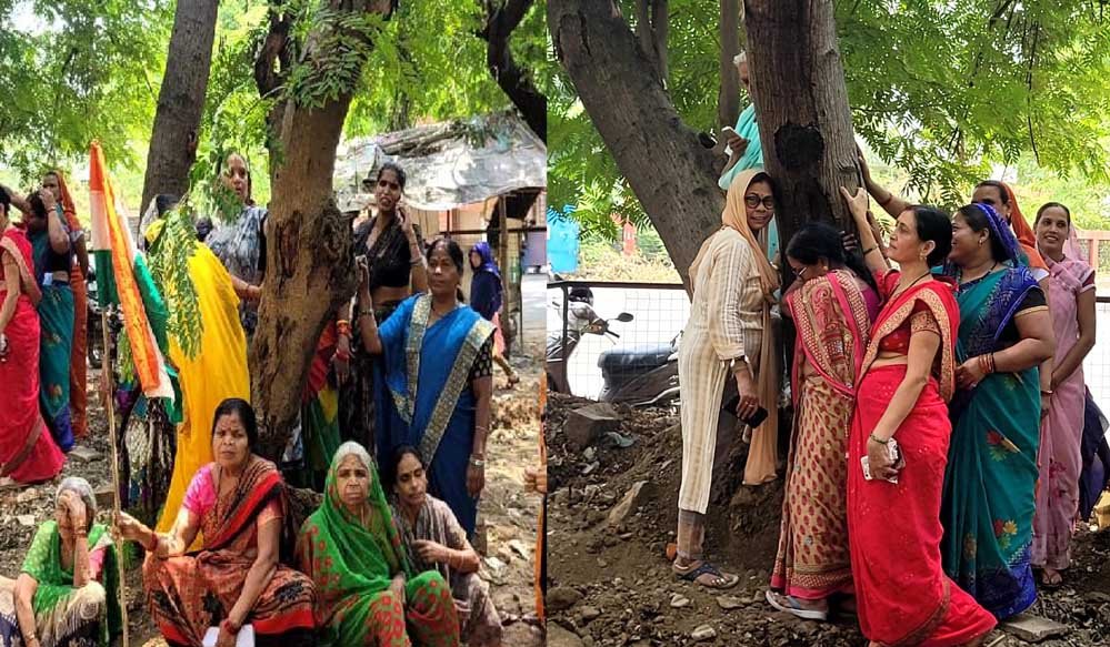 गुरुवार सुबह शिवाजी नगर और तुलसी नगर इलाके के लोग 5 नंबर स्टॉप के पास राम मंदिर परिसर में जुटे। इसके बाद महिलाएं पेड़ों से चिपक गईं। विद्या पाटिल, सुखबाला तो रुआंसी हो गईं। सुखबाला कहा कि ये पेड़ हमारे परिवार का हिस्सा है। इनके साथ ही हम भी बड़े हुए हैं, लेकिन अब इन्हें काटने का फरमान आया है। विद्या ने कहा कि इन पेड़ों को बच्चों की तरह पाला जा रहा है। हमें कहा जा रहा है कि आपको कलखेड़ा भेजा जाएगा। यदि भेजना ही है तो मंत्री-विधायकों को भेजें।