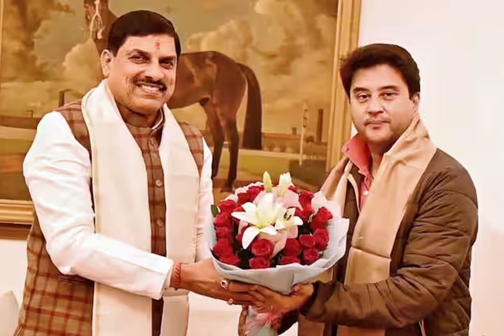 सिंधिया ने गुलदस्ता दिया तो सीएम ने पहनाया दुपट्टा
