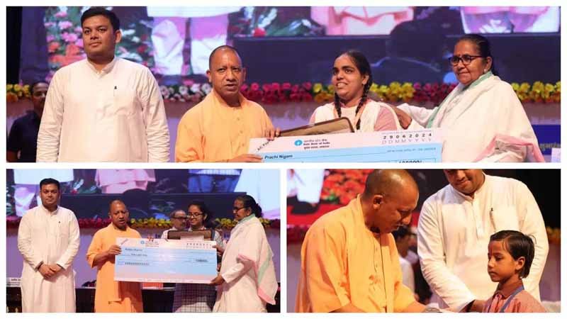 सीएम योगी ने जारी किए 1056 करोड़, मेधावियों को एक लाख रुपये, टैबलेट और गोल्ड मेडल देकर किया सम्मानित