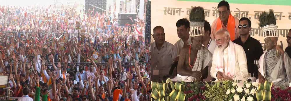 पीएम ने कांग्रेस पर आरोप लगाते हुए कहा कि देशवासियों की उम्मीद पूरी करते हुए अयोध्या में भव्य राम मंदिर बनाने का काम भाजपा ने किया। कांग्रेस राम मंदिर के नाम पर तानाकशी करती रही पर जब मंदिर में रामलला की प्रतिष्ठा का निमंत्रण दिया तो सातवें आसमान से भी ऊंचे अपने अहंकार के चलते कांग्रेस ने यह न्योता ठुकरा दिया। यह भगवान राम के ननिहाल और माता शबरी की धरती छत्तीसगढ़ का घोर अपमान है। धर्म के नाम पर देश को बांटने वाली कांग्रेस शुरू से तुष्टीकरण में लगी रही है। वोट बैंक का राजनीति कांग्रेस के डीएनए में है और इसके लिए वह दलितों, वंचितों, आदिवासियों, पिछड़ों का हक मारने से भी पीछे नहीं हटती। भाजपा सबका साथ, सबका विकास, सबका विश्वास और सबका प्रयास के मूलमंत्र पर काम कर रही है। मोदी ने कहा कि हमारी प्राथमिकता गांव, गरीब, किसान, महिला और नौजवान का कल्याण है। हमने नारे नहीं दिए बल्कि 10 वर्षों में काम किया। हमारी नीति और नीयत सही है। हम जो कहते हैं, उसे पूरा करने के लिए परिश्रम करते हैं, चुनौतियों को भी चुनौती देकर अपना कहा पूरा करते हैं।