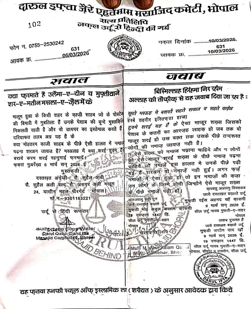 भोपाल। ईद की नमाज से कुछ दिन पहले ही काजी के खिलाफ फतवा जारी हुआ था. जिसको लेकर सोशल मीडिया पर विवाद देखने को मिला था. अब मामले में ऑल इंडिया मुस्लिम त्योहार कमेटी भी खुलकर सामने आ गई है. कमेटी की तरफ से कहा गया कि अब्दुल कलाम साहब पर खुद ही कई मामले चल रहे हैं. इनमें धोखाधड़ी (420), दहेज प्रताड़ना (498) समेत अन्य केस शामिल हैं. वो क्या काजी मुश्ताक अली नदवी के खिलाफ फतवा जारी करेंगे।