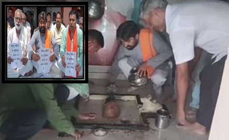 मेरठ : मेरठ के दौराला थाना क्षेत्र के दादरी गांव स्थित एक मंदिर में उस समय विवाद गहरा गया, जब पता चला कि एक कासिम नामक युवक, जो एक विशेष समुदाय से जुड़ा बताया जा रहा है, नकली पुजारी बनकर मंदिर में बैठा था। यह मामला सामने आने के बाद शुक्रवार को हिंदू संगठनों और ग्रामीणों में रोष फैल गया। हिंदूवादी नेता सचिन सिरोही के नेतृत्व में दर्जनों संगठनों के कार्यकर्ता और गांव के लोग मंदिर में पहुंचे। उन्होंने शिवलिंग पर जलाभिषेक किया, मंदिर परिसर को शुद्ध किया और हनुमान चालीसा का पाठ किया।