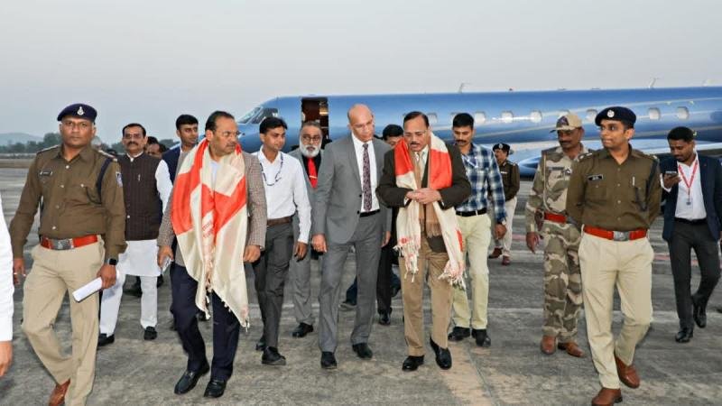 चीफ जस्टिस सूर्यकांत के साथ न्यायाधिपति जे.के. माहेश्वरी व सतीश चंद्र शर्मा भी खजुराहो पहुंचे. खजुराहो एयरपोर्ट पर उच्च न्यायालय जबलपुर खण्डपीठ ग्वालियर के न्यायाधिपति आनंद पाठक व विवेक रूसिया, रजिस्ट्रार जनरल धरमिंदर सिंह, प्रधान जिला व सत्र न्यायाधीश रविंदर सिंह, मुख्य न्यायिक मजिस्ट्रेट स्वाति निवेश जायसवाल ने सीजीआई का स्वागत व अगवानी की. इस दौरान खजुराहो एयरपोर्ट पर सीजेआई को गार्ड ऑफ ऑनर दिया गया.