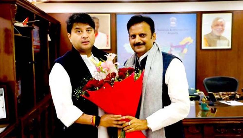 उप मुख्यमंत्री शुक्ल ने केंद्रीय नागरिक विमानन मंत्री सिंधिया से सौजन्य भेंट की