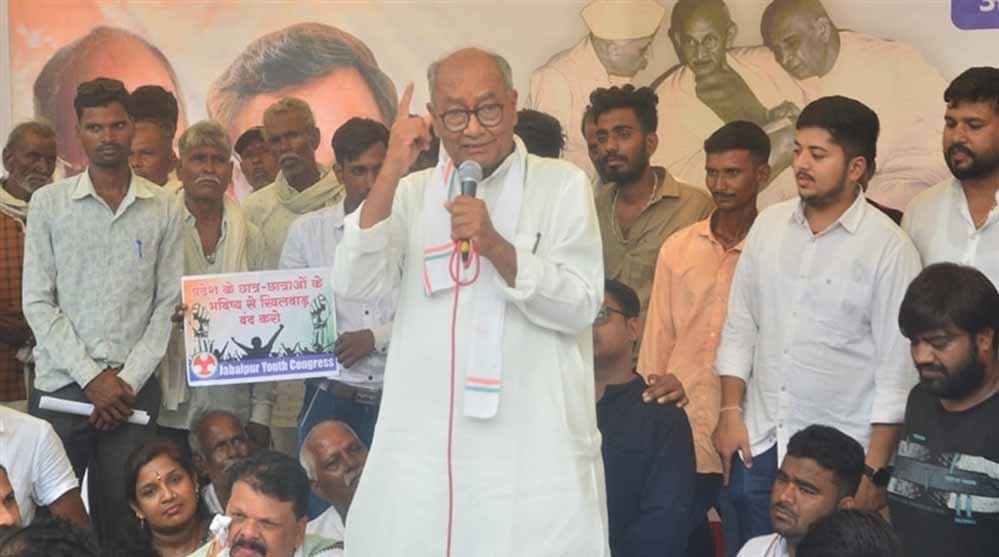 मध्य प्रदेश के जबलपुर में प्रदेश के पूर्व मुख्यमंत्री दिग्विजय सिंह सिविक सेंटर में चल रहे युवा कांग्रेस के धरने में पहुंचे। दिग्विजय सिंह ने युवा कांग्रेस के कार्यकर्ताओं को नसीहत देते हुए कहा कि अगर आप लोगों को कुछ सीखना है तो आरएसएस से सीखो, जो कि हमारे मुख्य विरोधी हैं, लेकिन वो माइंड गेम खेलते हैं।