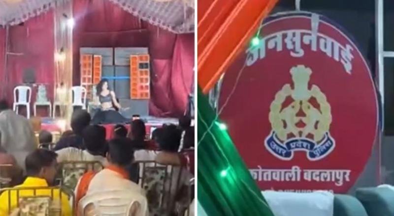जैसे ही थाना प्रभारी बदलापुर अरविंद कुमार पांडेय पूजा पाठ के लिए तैयार होने गए, उसी समय स्टेज के सामने सिविल ड्रेस में मौजूद कुछ पुलिसकर्मियों और स्थानीय लोगों द्वारा भोजपुरी गीत की फर्माइश की गई। स्टेज पर डांस कर रही नर्तकियों ने भोजपुरी गाने पर तो नहीं लेकिन आम तौर पर आर्केस्ट्रा में बजाए जाने वाले फिल्मी गाना मुझे नौ लक्खा मंगा दे… पर डांस किया।