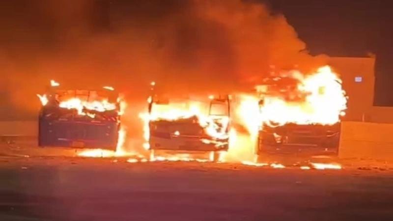 डिपो में लगी आग: तीन बसों का हुआ सफाया, आस-पास इलाके में फैल गया धुआँ
