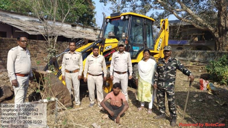 वन विभाग से प्राप्त जानकारी के अनुसार 09 मार्च को दूरभाष के माध्यम से सूचना मिली कि दालढोढ़ी नामक स्थान पर जेसीबी मशीन से वन भूमि में खुदाई कर खेत बनाने का प्रयास किया जा रहा है। सूचना मिलते ही वनमण्डलाधिकारी जशपुर श्री शशि कुमार के निर्देश पर वन परिक्षेत्राधिकारी बगीचा सुश्री यशस्वी मौर्य (प्रशिक्षु भा.व.से.) वन अमले के साथ मौके पर पहुंचीं और जांच की।