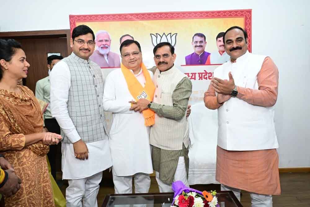 भारतीय जनता पार्टी प्रदेश कार्यालय में रविवार को पार्टी के प्रदेश अध्यक्ष व सांसद श्री विष्णुदत्त शर्मा के समक्ष पार्टी की रीति नीति, केंद्र एवं प्रदेश सरकार की जनहितैषी नीतियों से प्रभावित होकर मध्यप्रदेश कांग्रेस मीडिया विभाग के पूर्व उपाध्यक्ष व पूर्व प्रवक्ता श्री अजय सिंह यादव एवं वरिष्ठ पत्रकार व आईआईटी कानपुर की एलुमनाई डॉ. वनिता श्रीवास्तव ने भारतीय जनता पार्टी की सदस्यता ग्रहण की। पार्टी नेताओं ने उनका अंगवस्त्र पहनाकर स्वागत किया।