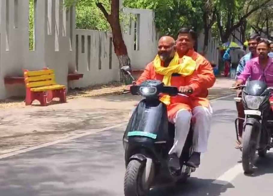 मध्य प्रदेश में लोकसभा चुनाव के चौथे चरण की नामांकन प्रक्रिया शुरू हो गई है। देशभर में नॉमिनेशन दाखिल के दौरान नेताओं के अजब गजब चुनावी रंग देखने को मिल रहे हैं। मामला मध्य प्रदेश के उज्जैन का है। जहां कांग्रेस प्रत्याशी महेश परमार ई बाइक पर सवार होकर नामांकन पत्र जमा करने पहुंचे। इसका वीडियो भी सामने आया है।