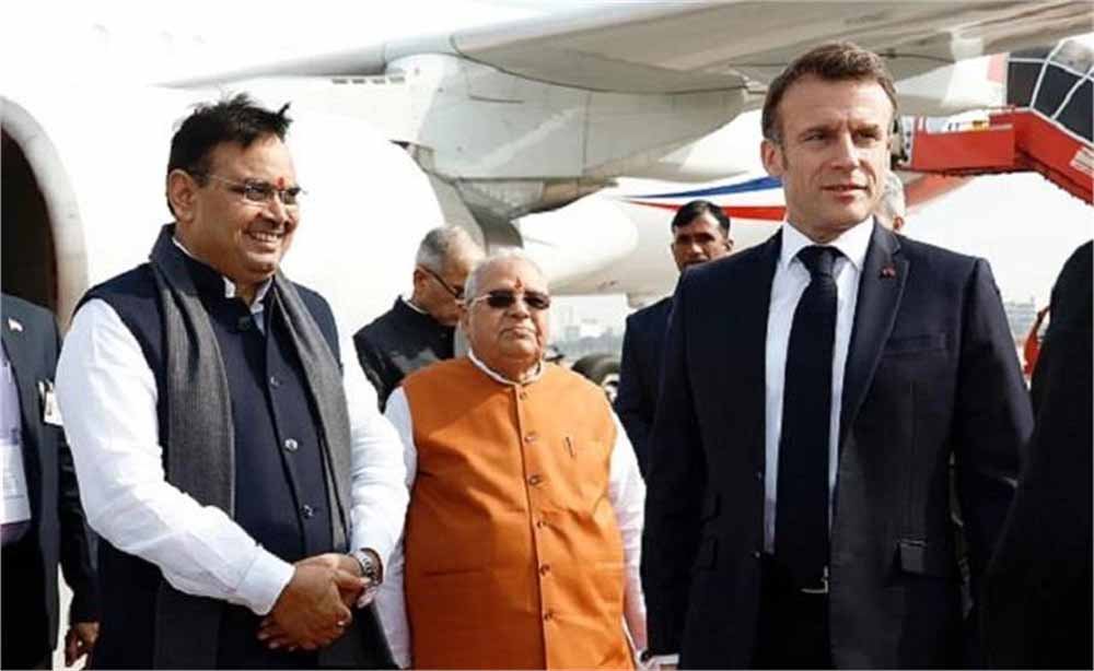 फ्रांस के राष्ट्रपति एमैनुएल मैक्रों बृहस्पतिवार दोपहर जयपुर पहुंचे, जहां वह आमेर के किले जैसे ऐतिहासिक स्थलों को देखने के बाद प्रधानमंत्री नरेन्द्र मोदी के साथ रोड शो में शामिल होंगे। शाम को दोनों नेता भारत-फ्रांस द्विपक्षीय संबंधों को मजबूत बनाने के लिए बातचीत भी करेंगे। मैक्रों 26 जनवरी को दिल्ली में गणतंत्र दिवस समारोह में मुख्य अतिथि होंगे। वह अपने भारत दौरे के दौरान जयपुर में कुछ घंटे रुकेंगे। इससे पहले हवाई अड्डे पर राज्यपाल कलराज मिश्र और मुख्यमंत्री भजनलाल शर्मा ने मैक्रों का स्वागत किया। उत्तर प्रदेश के बुलंदशहर के दौरे पर गए प्रधानमंत्री मोदी बाद में जयपुर पहुंचेंगे। मैक्रों-मोदी का रोड शो यहां जंतर-मंतर से शुरू होगा और हवा महल पर खत्म होगा।