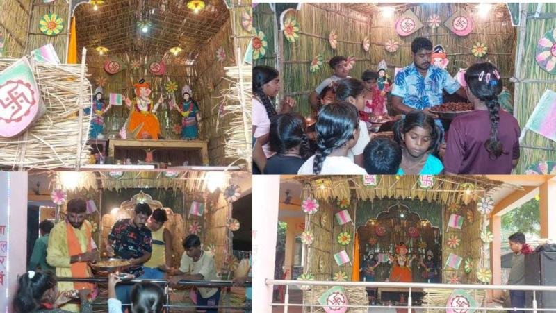 गणपति बप्पा को हल, हसिया और गैंती के साथ सजाया गया है, जबकि रिद्धि-सिद्धि को छत्तीसगढ़ी वेशभूषा लुगरा में सजाया गया है। यह दृश्य लोगों को खूब आकर्षित कर रहा है और पंडाल देखने वालों की भीड़ लगी हुई है।