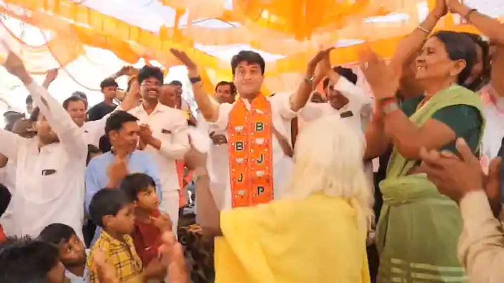 जनता के साथ गाने पर झूमते दिखे सिंधिया